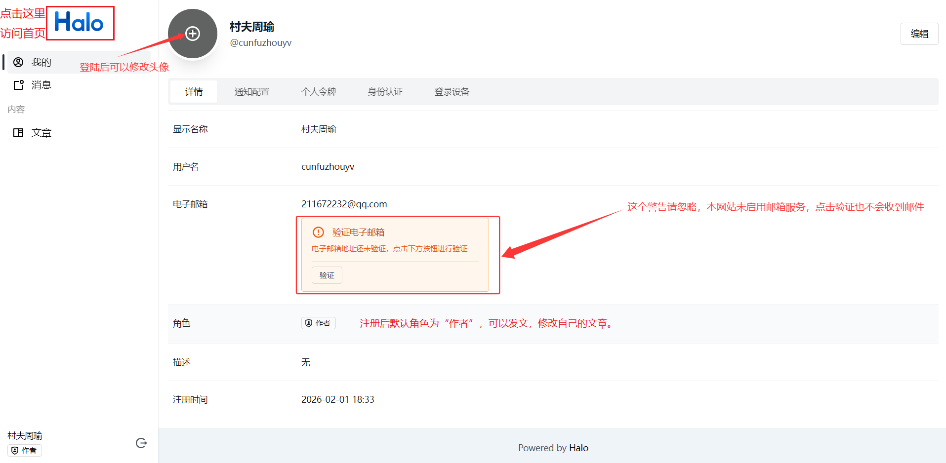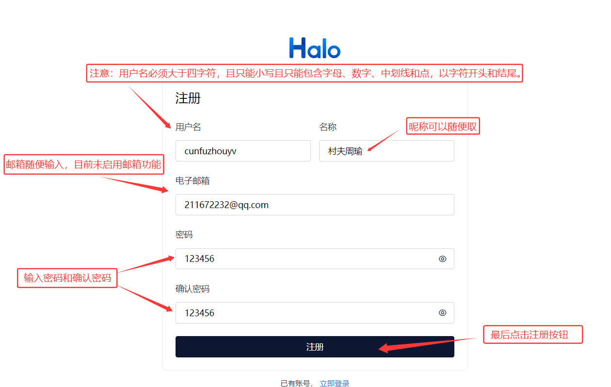 注册后可以使用刚刚注册的账户和密码进行登录!