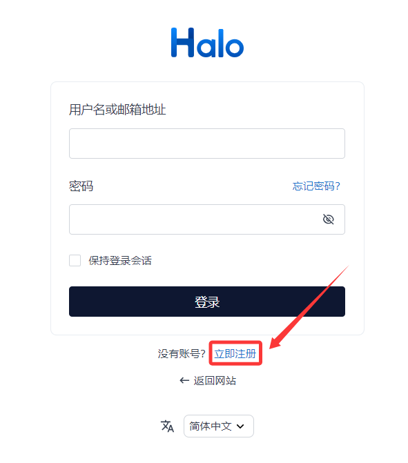 然后点击登录页下方的"立即注册"开始注册账号。